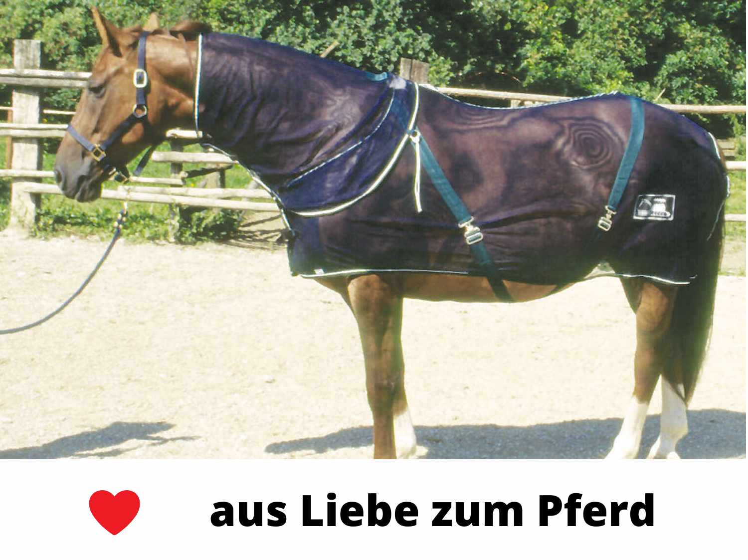 Klassische Fliegendecke zum Schutz vor lästigen Insekten. Die Decke ist mit Kreuzgurten ausgestattet.